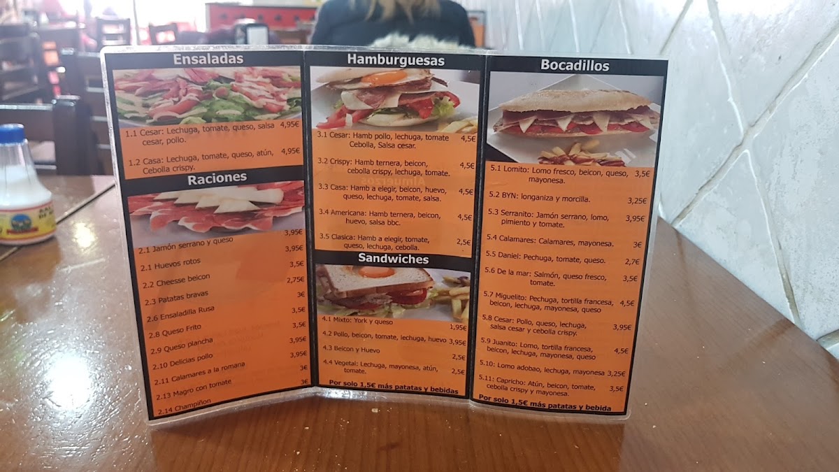 The menu at Cafetería Mira showcases a variety of mouthwatering options, ensuring there’s something for everyone. Start your day with a sumptuous breakfast wrap or indulge in a vibrant salad. The Ensalada César (€4.50) elegantly combines crisp lettuce, ripe tomatoes, tender chicken, and a luscious Caesar dressing, while the Ensalada Murciana (€3.50) tantalizes with its harmonious medley of tomatoes, onions, and olives, offering a refreshing taste of Spain. If you're in the mood for something more substantial, don't miss the Wrap Serranito (€3.50) filled with savory Spanish ham and piquant peppers.